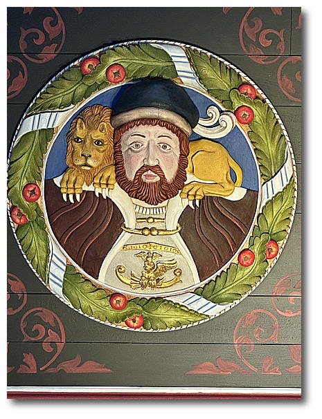 with replicas of the Stirling Heads. These are carved oak